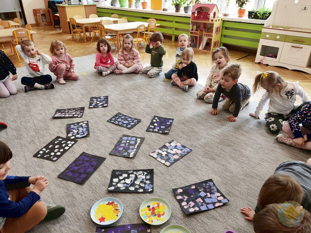 Na zakończenie powstały piękne prace plastyczne „Kosmos” – pełne planet, gwiazd i dziecięcych pomysłów. To była wspaniała okazja, by rozbudzać zainteresowanie kosmosem i rozwijać twórczą wyobraźnię!